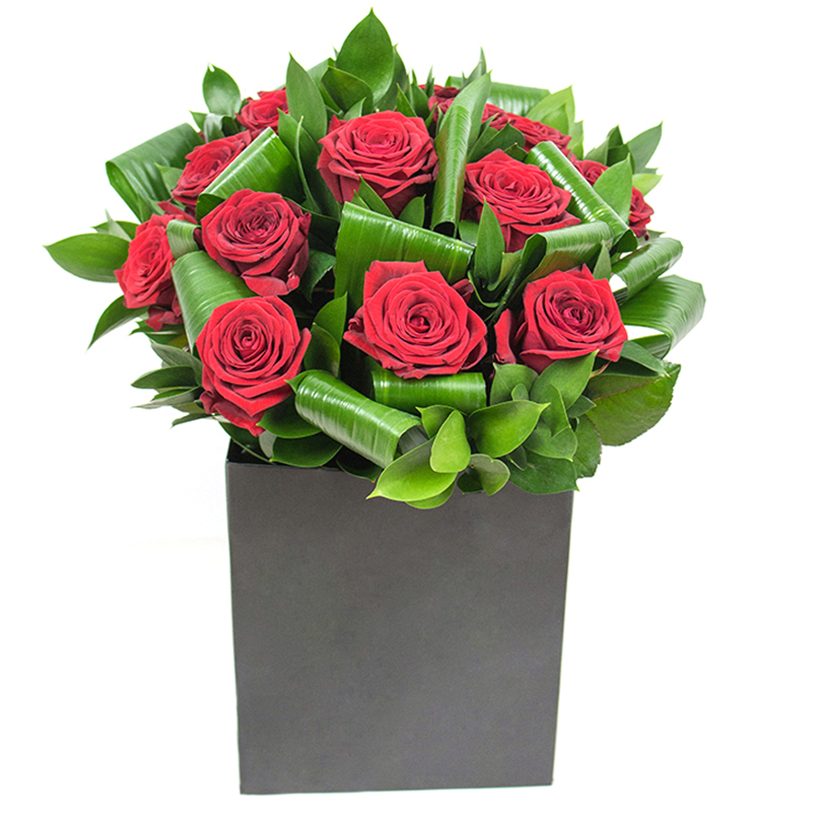 Discover the art of gifting with our stunning bouquet that features radiant red roses beautifully complemented by rich aspidistra leaves and ruscus accents. Each flower is carefully hand-selected for its exceptional quality and freshness, promising a luxurious presentation that is perfect for every occasion. This arrangement is a tribute to both style and natural beauty.